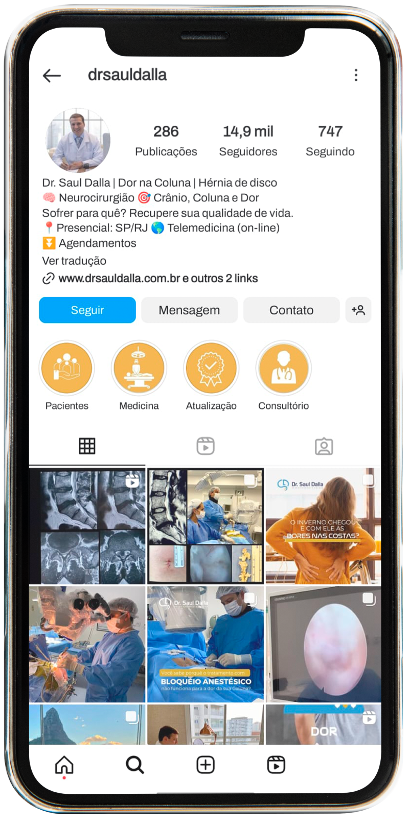 Está com algum sintoma no cérebro ou coluna vertebral? Faça o seu agendamento com o Dr. Saul Dalla e se beneficie dos melhores tipos de tratamentos para esses tipos de problemas.